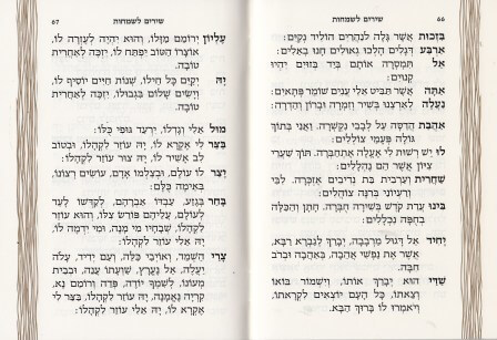 Kiddushim, songs for Friday night, songs for Shabbat, songs for the third meal,