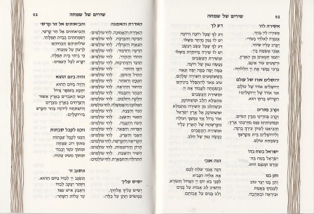 יוצר מידו, שחי לאל, שלום לבן דודי, תורת אמתף אם ננעלו, אשאל אלהי, אהבת הדסה, יחיד אל דגול,