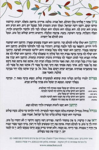ברכת המזון בנוסח אשכנז ותימני בלאדי -עלים SMACHOT