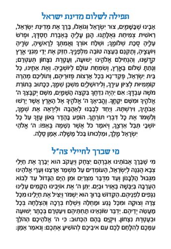 תפילה לשלום המדינה בפורמט מהודר SMACHOT