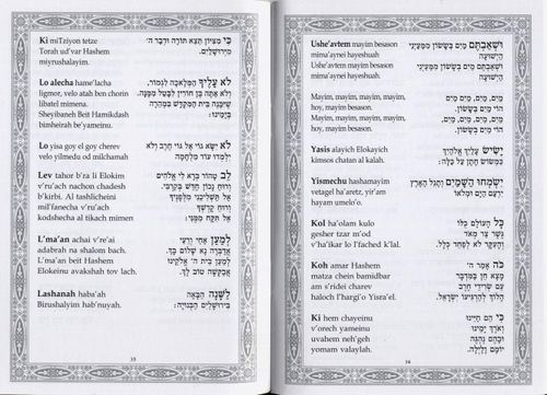 ברכת המזון, שבע ברכות, ומבחר שירי שבת ושירים חסידיים עם תרגום פונטי וסימולטני לאנגלית.