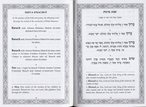 ברכת המזון ושבע ברכות בתרגום לאנגלית -בעיצוב אישי