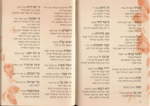 הנה אנוכי, הנה מה טוב, הרחמן, השיבנו ה’, התעוררי, ואמר ביום, ואני בחסדך, ובאו האובדים, ובנה ירושלים,