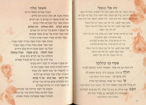 זמירון בעיצוב מרהיב ואצילי עם תוכן עשיר של כל הברכות הקשורות לשבת – קידושים, הבדלות , שירי שבת ופיוטים, ברכת המזון והכל בשני הנוסחים:  בנוסח אשכנז ובנוסח עדות המזרח.