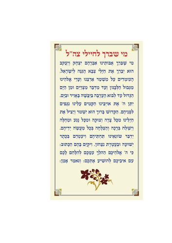 ברכון מי שבירך לחיילי צהל אפשרות להדפסה על נייר משובח או במדבקה