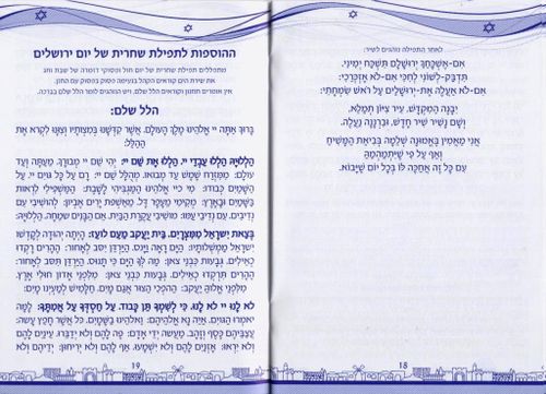 “על נס שנעשה בגלוי לכלל ישראל מחויבים אנו לברך, ונס שחרורה של ירושלים הוא גדול לכלל, לכן אנו שמחים במיוחד עליו וחוגגים אותו ומשבחים, ומפארים לאלהינו על הנסים והנפלאות שעשה עמנו יותר מכל דבר אחר. לפיכך מצווה להרבות בו השמחה ולחוג אותו בהלל והודיה…”