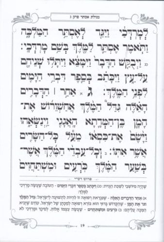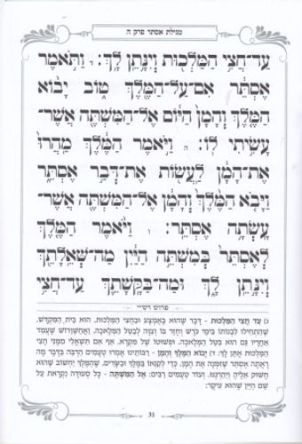 המגילה כוללת רש"י מנוקד (כתב מרובע)