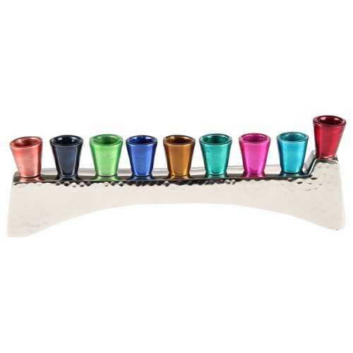 חנוכייה אלומיניום לנרות עם קנים צבעוניים SMACHOT