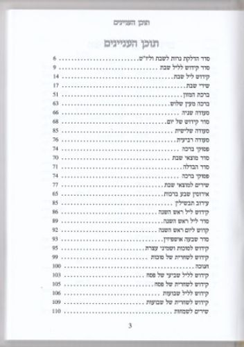 סדר אושפיזין, קידוש לסוכות ושמיני עצרת, סדר הדלקת נרות חנוכה, קידוש לשביעי של פסח, קידוש ליום החג של פסח, קידוש ליל שבועות, קידוש ליום חג שבועות,