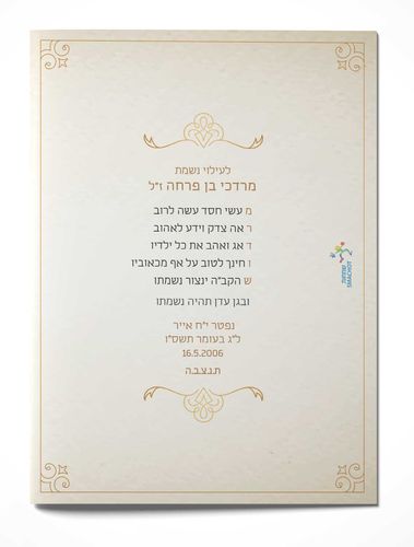 ניתן כמזכרת מיוחדת ומקורית לשבת חתן/ בר מצווה ועוד…