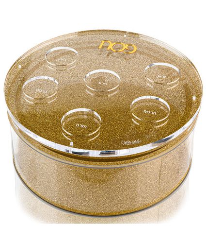 קופסת אחסון למצות עגולות עם בסיס שימר מפואר + קערת ליל הסדר המשמשת כמכסה.