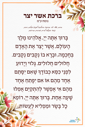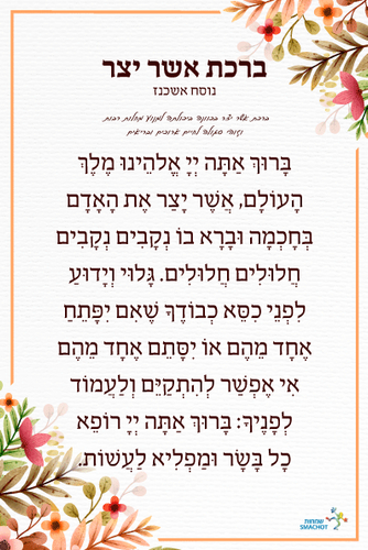 ברכת אשר יצר מעוצב- ניתן לתלות אצלכם במשלוח מהיר SMACHOT
