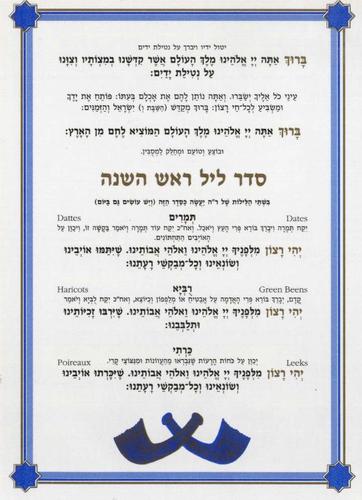 Festive Rosh Hashanah Bencher. Includes Kiddush for Rosh Hashanah and the seder of Rosh Hashanah food symbols.