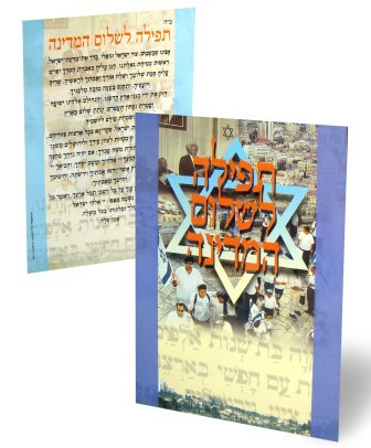 Prayer for the Peace of the State of Israel. Deluxe hard format, laminated. Ideal for events in Iyar or for institutions and synagogues. 16 cm length x 11 cm wide.