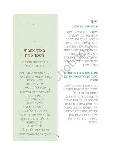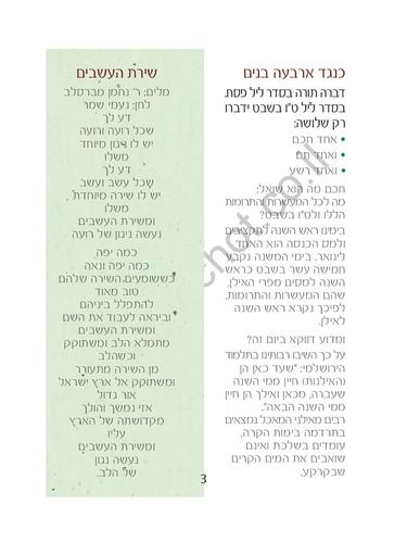 Tu B’Shevat Seder including songs of Israel, blessings, stories, Grace After Meals, Blessings After Snacks. 40 pages.