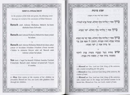Grace After Meals with Sheva Brachot. English translation includes phonetic translation 12 cm wide x 17 cm length