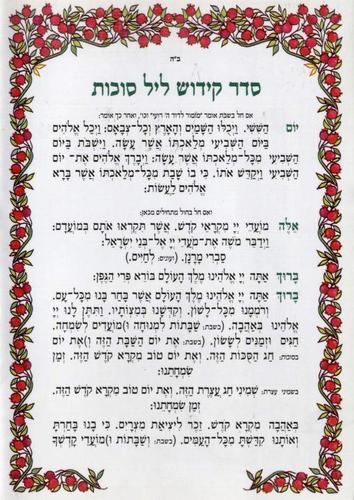 Succoth – Zman Simchatenu – Pamphlet with holiday blessings, Kiddush for Succoth evening, seder Ushpizin.