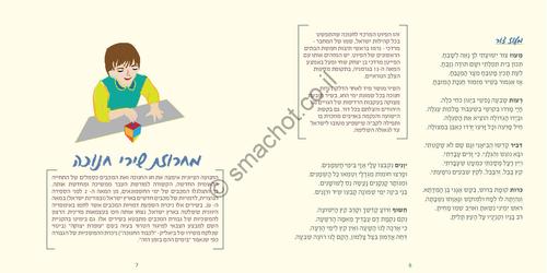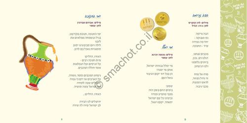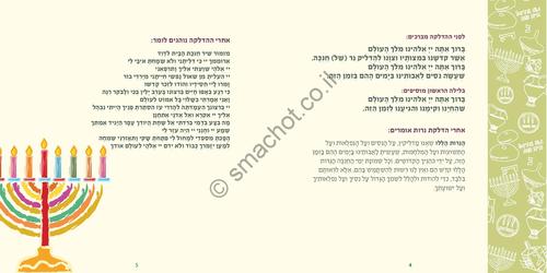 Chanukah candle lighting, Chanukah songs, Grace After Meals, in an illustrated booklet in cooperation with the Shekel Foundation for people with special needs.