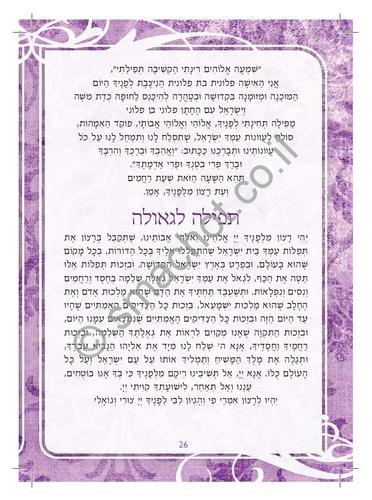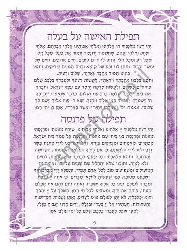 Prayer book for women, includes candle lighting, separation of challah, Bat Mitzvah prayers, Zeved HaBat, Song of Songs, Nishmat Kol Chai. Prayers for: Income, marital matches, health, etc. 12 cm wide x 17 cm length.