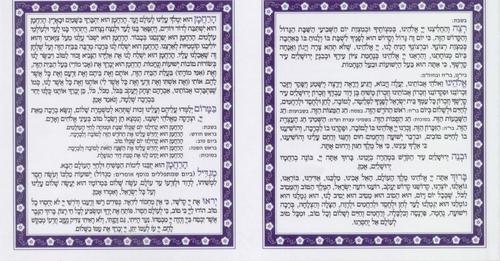 Bencher with special styling, includes Grace After Meals, Ashkenaz and Eidot Mizrach. Matte lamination. Also includes Sheva Brachot. 10 × 10 cm.