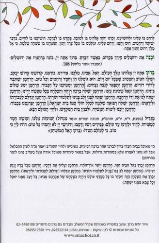 Grace After Meals, combination Yemenite and Eidot Mizrach. Includes Sheva Brachot and Blessings After Snacks. Laminated, quality paper. Four fold.