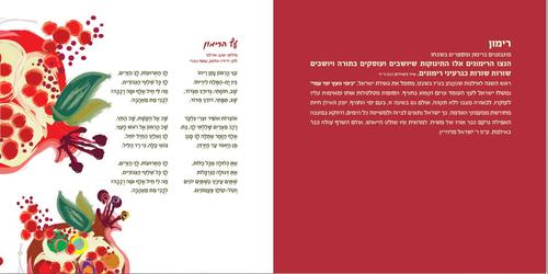 The songs in the book: Song of the weeds, A shadow and a well, The almond tree Blossoms, The pomegranate tree, The snow on my city, on all of these, Fill Esaminu Bar, Ginat Egoz, In my land of love. O Land of my Country, The Land of the Seven Species, The Eucalyptus grove, The beautiful Land of Israel and more …