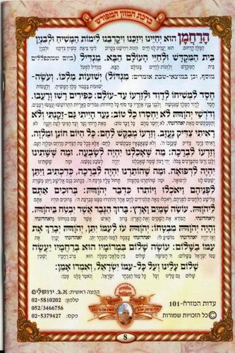 Grace After Meals - Eidot Mizrach