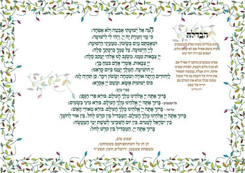 Havdala placemat. Customized. Especially useful to contain spills. Can include text of Havdala or anything you want.