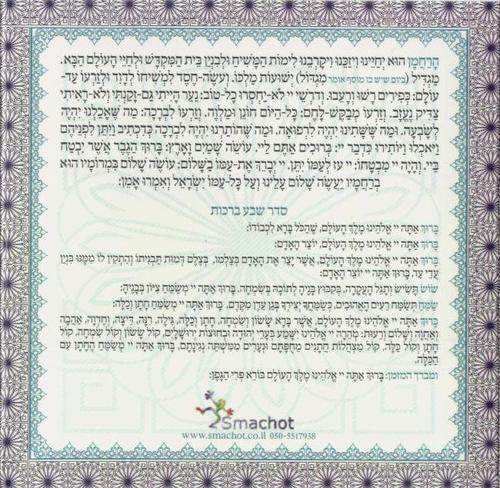 Grace After Meals – Ashkenaz and Eidot Mizrach includes Sheva Brachot